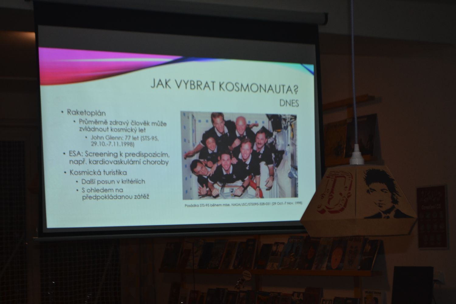 Do židlí znovu usedlo ke třem desítkám hostů, a tentokrát si vyslechli povídání o tom, je-li někdy kosmonautům ve vesmíru špatně. Přednášející Jana Kvíderová má k tomuto tématu mimořádně blízko, neboť ji zájem o astronomii a kosmonautiku přivedl astrobiologii a ke kosmické biologii.