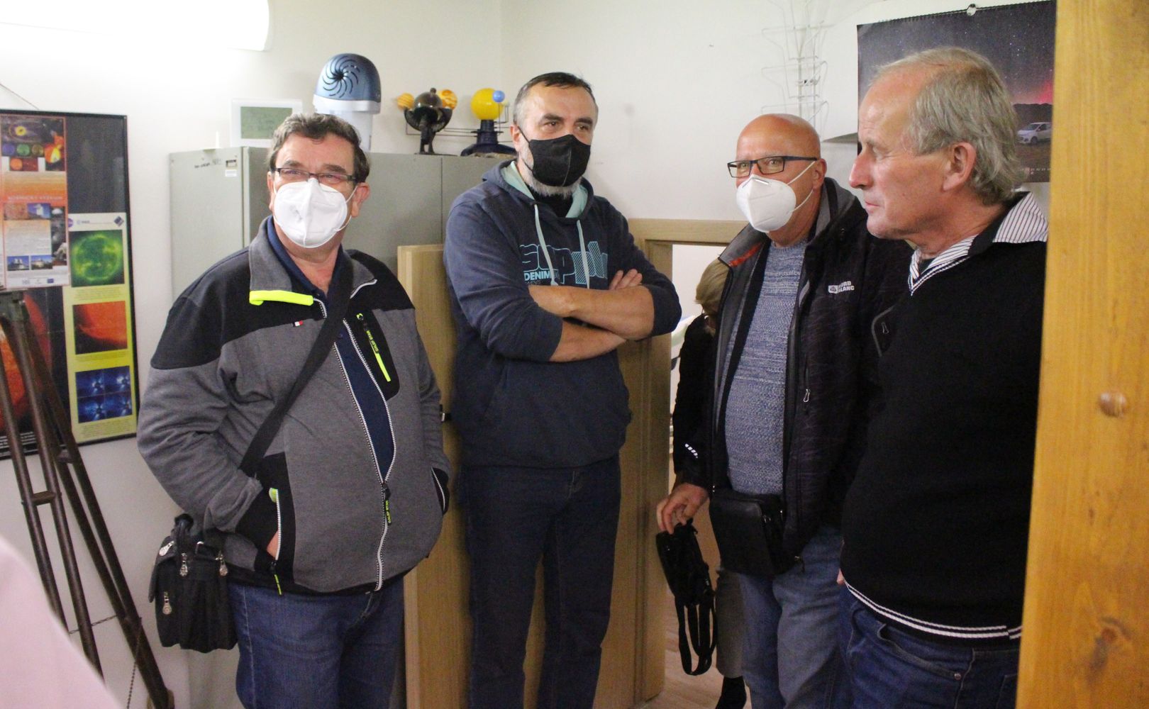 A nechyběla samozřejmě ani samotná návštěva hvězdárny ve čtvrtém patře budovy. Počasí sice pozorování hvězdné oblohy nepřálo, přesto však návštěvníci strávili v jejím interiéru i na vyhlídkové plošině bezmála hodinu vyplněnou rozmluvami