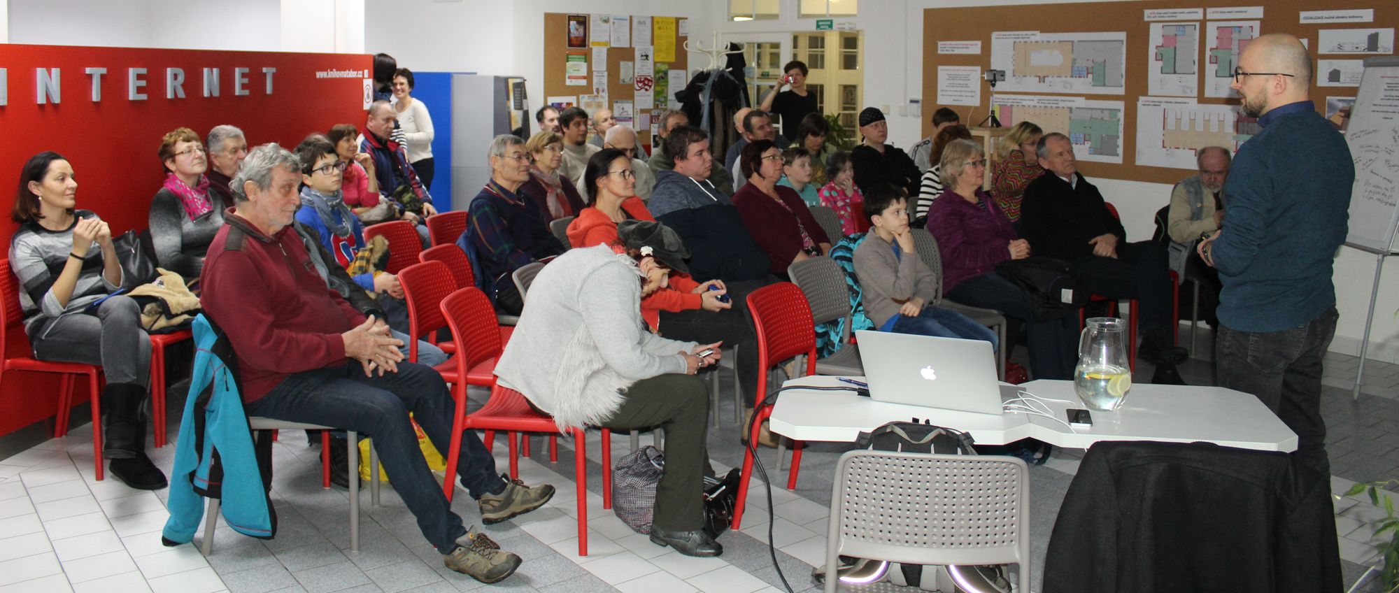 Téměř čtyři desítky návštěvníků besedy, která se řadila do rámce pravidelného cyklu Vesmírný Tábor, nechal Pavel Gabzdyl nahlédnout do tajů našeho kosmického souseda. Na přetřes přišly nejen oficiální výsledky klíčových měsíčních misí, ale také vysvětlení prožitků běžných pozemšťanů obdivujících Měsíc na noční obloze.